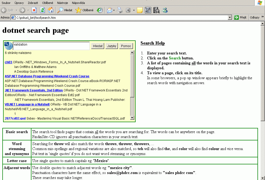 - Vložení vyhledávacího software na CD, DVD pro fulltextové prohledávání Vašich textů. Popis řešení: uživatel nemusí nic instalovat. Pouze vloží CD/DVD do počítače, spustí se mu webový prohlížeč. Do položky dotaz (vše je v češtině) zapíše hledaný výraz a po odkliknutí se na stránce zobrazí seznam dokumentů z daného CD/DVD, které obsahují vyhledávaný text. Vynikající řešení zejména pro sborníky, výstupy konferencí, odborné publikace nebo digitalizované katalogy, archivy či evidence = již od 490 Kč